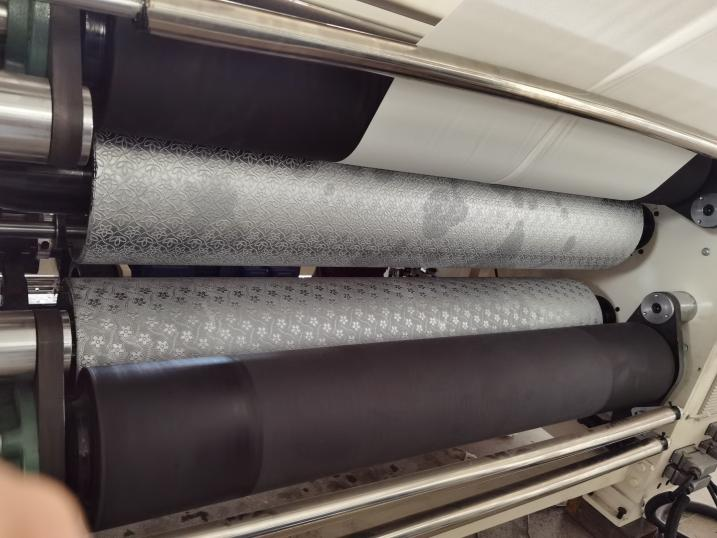 Acero a la unidad de goma en relieve. La vida útil del rodillo de goma es de aproximadamente 4-5 años, la profundidad de relieve es 0.8-1.2 mm según el patrón de relieve